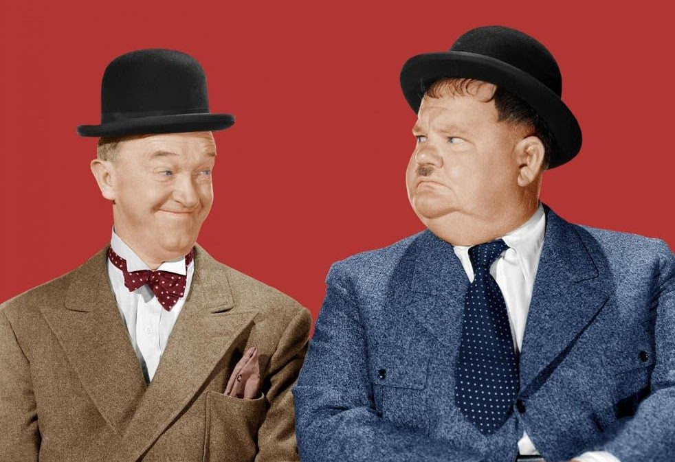 Laurel and Hardy were a comedy duo act during the early Classical Hollywood era of American cinema, consisting of Englishman Stan Laurel (1890–1965) and American Oliver Hardy (1892–1957). Starting their career as a duo in the silent film era, they later successfully transitioned to “talkies”. From the late 1920s to the mid-1950s, they were internationally famous for their slapstick comedy, with Laurel playing the clumsy, childlike friend to Hardy’s pompous bully.[1][2] Their signature theme song, known as “The Cuckoo Song”, “Ku-Ku”, or “The Dance of the Cuckoos” (by Hollywood composer T. Marvin Hatley) was heard over their films’ opening credits, and became as emblematic of them as their bowler hats.