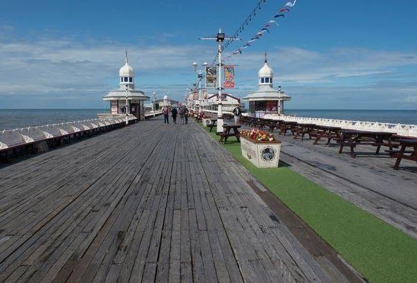 Pier’s attractions include a Gypsy palm reader and an ice cream parlour, the North Pier Theatre, a Victorian tea room, and the Carousel and Merrie England bars. The arcade, built in the 1960s, has approximately eleven million coins pass through its machines each year.