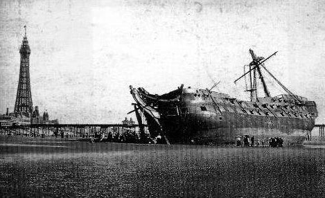 Nelson‘s former flagship, HMS Foudroyant, was moored alongside North Pier for an exhibition, but slipped anchor and was wrecked on the shore in a violent storm on 16 June 1897, damaging part of the jetty. The wreck of the ship broke up during December storms.